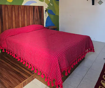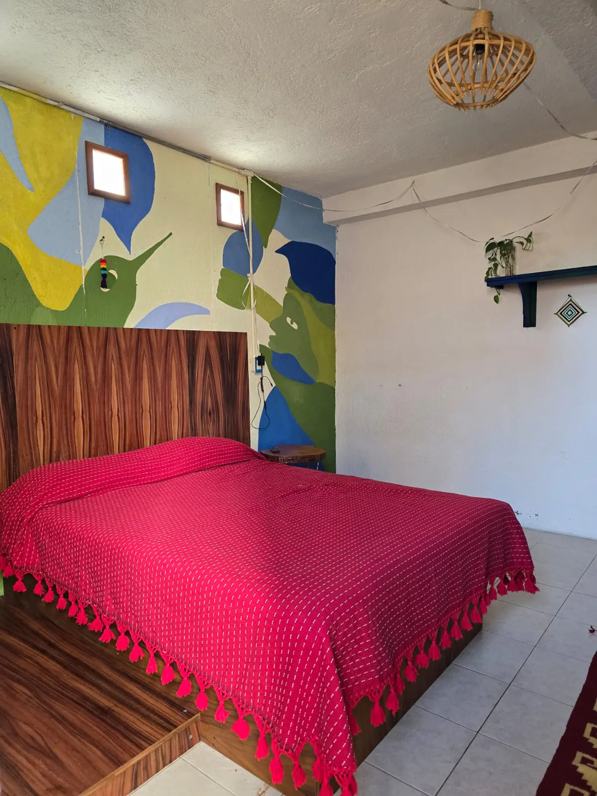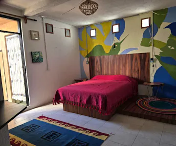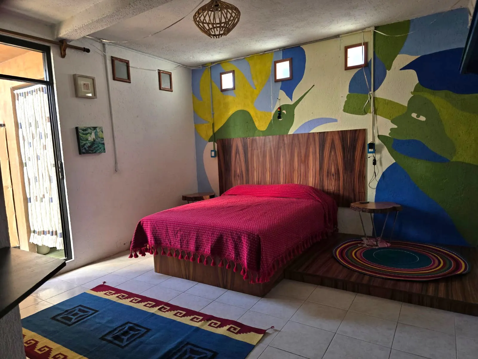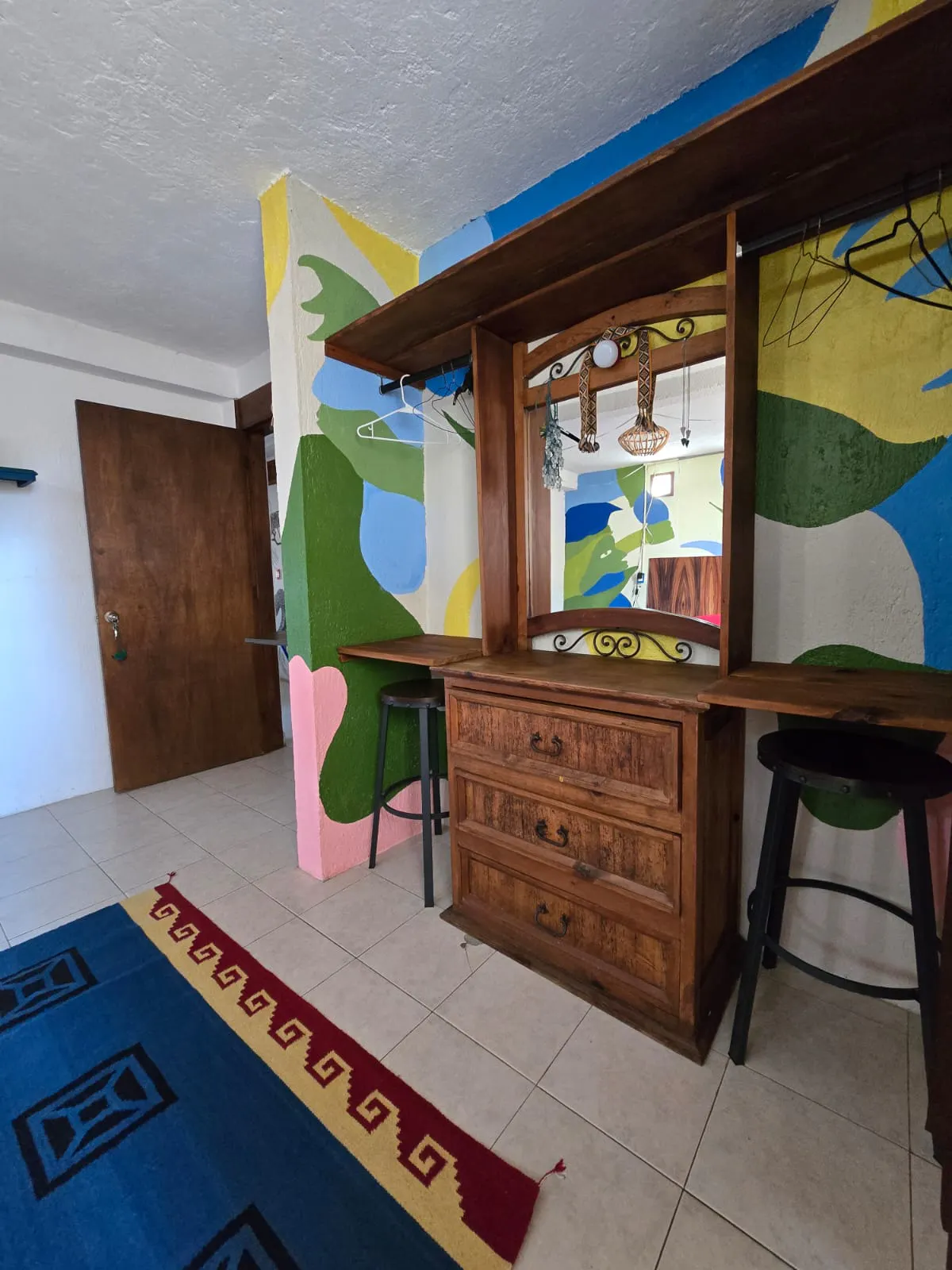 La habitación doble incluye una pequeña cocina equipada con nevera y utensilios de cocina, ideal para preparar y guardar comidas. También ofrece tetera/cafetera, zona de estar, baño privado con ducha y terraza con vistas al patio interior. La habitación cuenta con una cama.