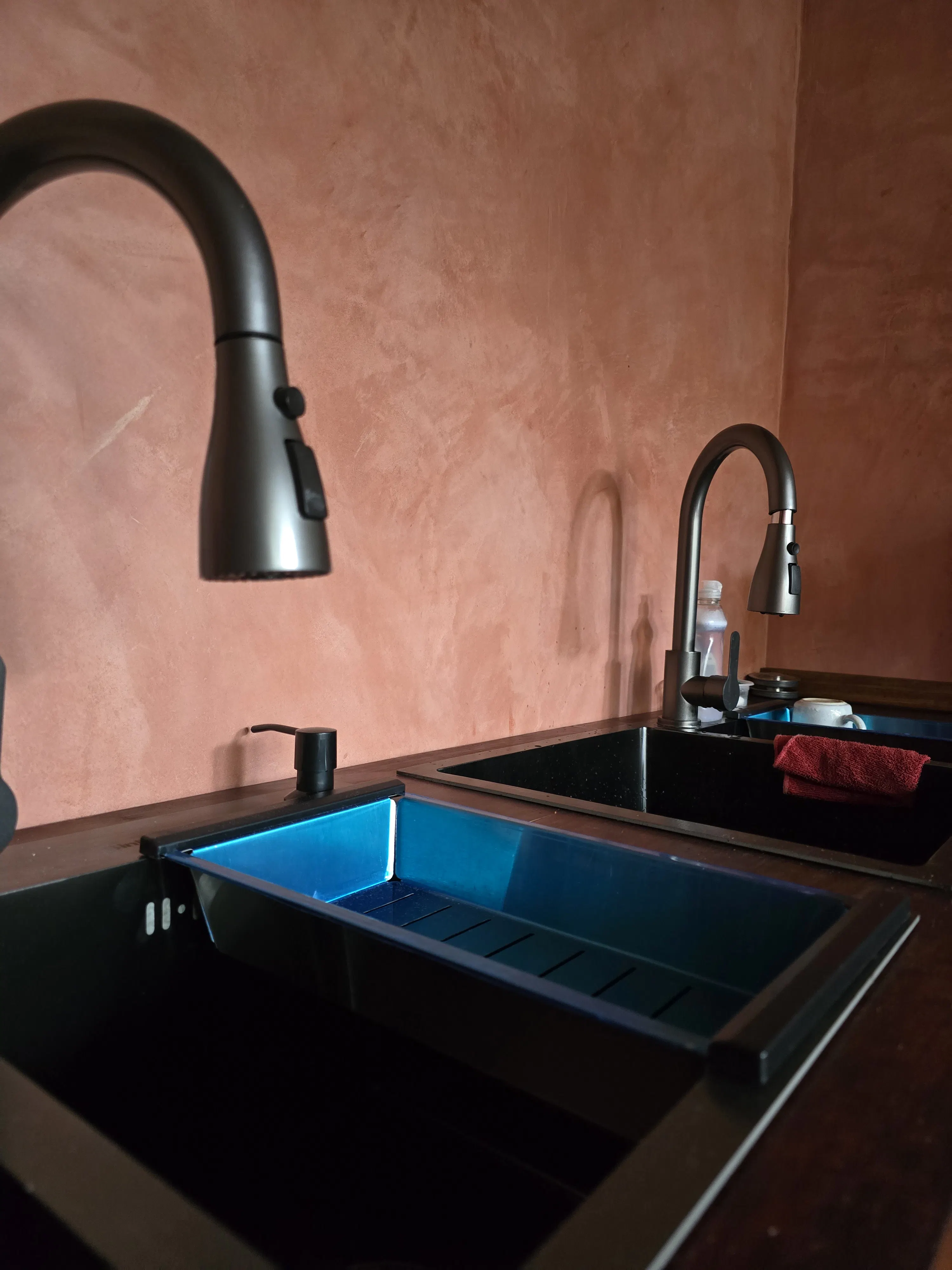 La habitación compartida se ubica en planta baja, a la que se accesa cruzando el jardín, donde se encuentra el alma de la casa, el elemento que da vida y nombre al espacio. En este recorrido se encuentra la cocina compartida, equipada con tres parrillas separadas, pensada para que cocinar sea cómodo y práctico, incluso cuando varias personas la usan al mismo tiempo.